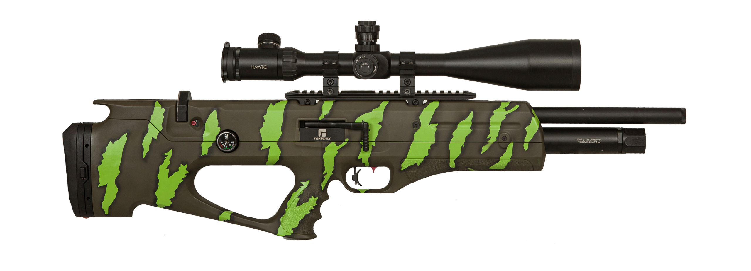 Futuristic bullpup design with adjustable picatinny rail and picatinny level.